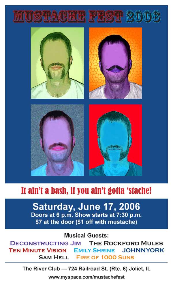 - Saturday, 6/17/06, 7:30PM - MUSTACHEFEST at The River Club, in Joliet, IL, with Deconstructing Jim, The Rockford Mules, Ten Minute Vision, Emily Shrine, Sam Hell, and Fire of 1000 Suns